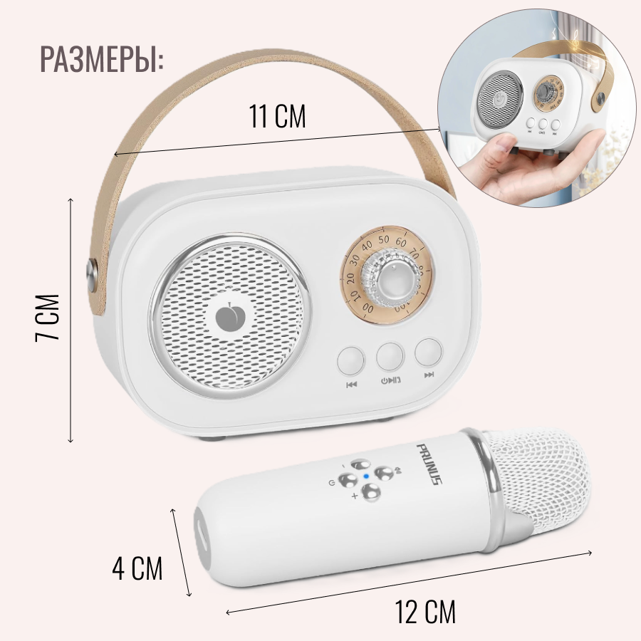 10 цен на Беспроводная мини колонка с микрофоном, цвет белый / караоке микрофон / блютуз колонка