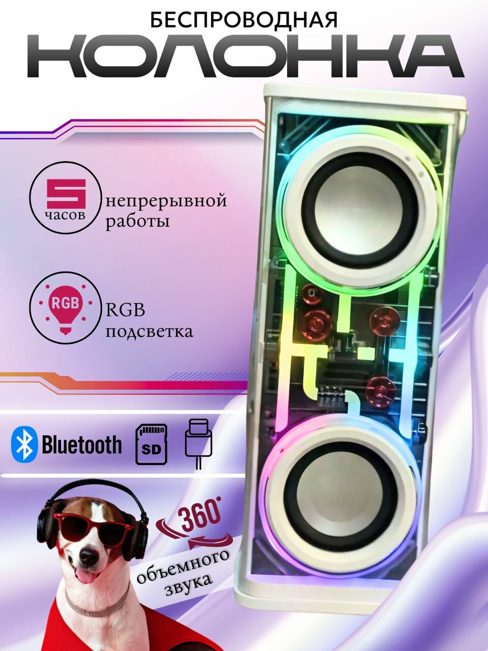| Особенности | поддержка microSD / световые эффекты |