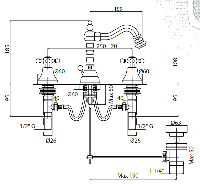 Смеситель для биде Cezares ATLANTIS-NOSTALGIA-BBS2-02 бронза информация: