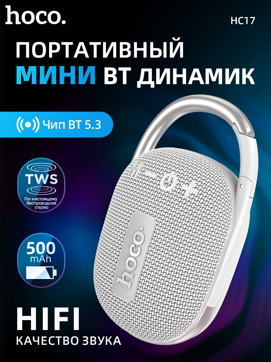 10 цен на Портативная влагозащищенная Hi-Fi BlueTooth колонка HOCO HC17 (серый)