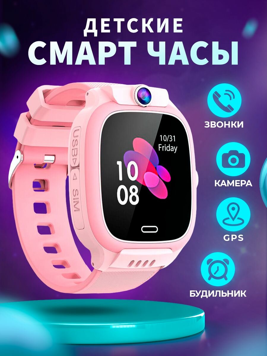 Розовый Детский Смарт часы Y31 с GPS и SIM картой, Wifi, камерой, кнопкой SOS, будильником и телефоном / Smart Watch Y31 информация: