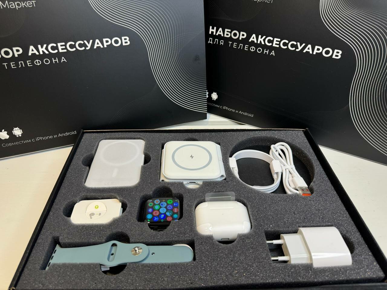 Набор смарт часы watch series 8 + беспроводные наушники A.Pods Pro + внешний аккумулятор и беспроводная зарядка MagSafe| Совместим с iOS и Android (синий ремешок) 4 212 ₽