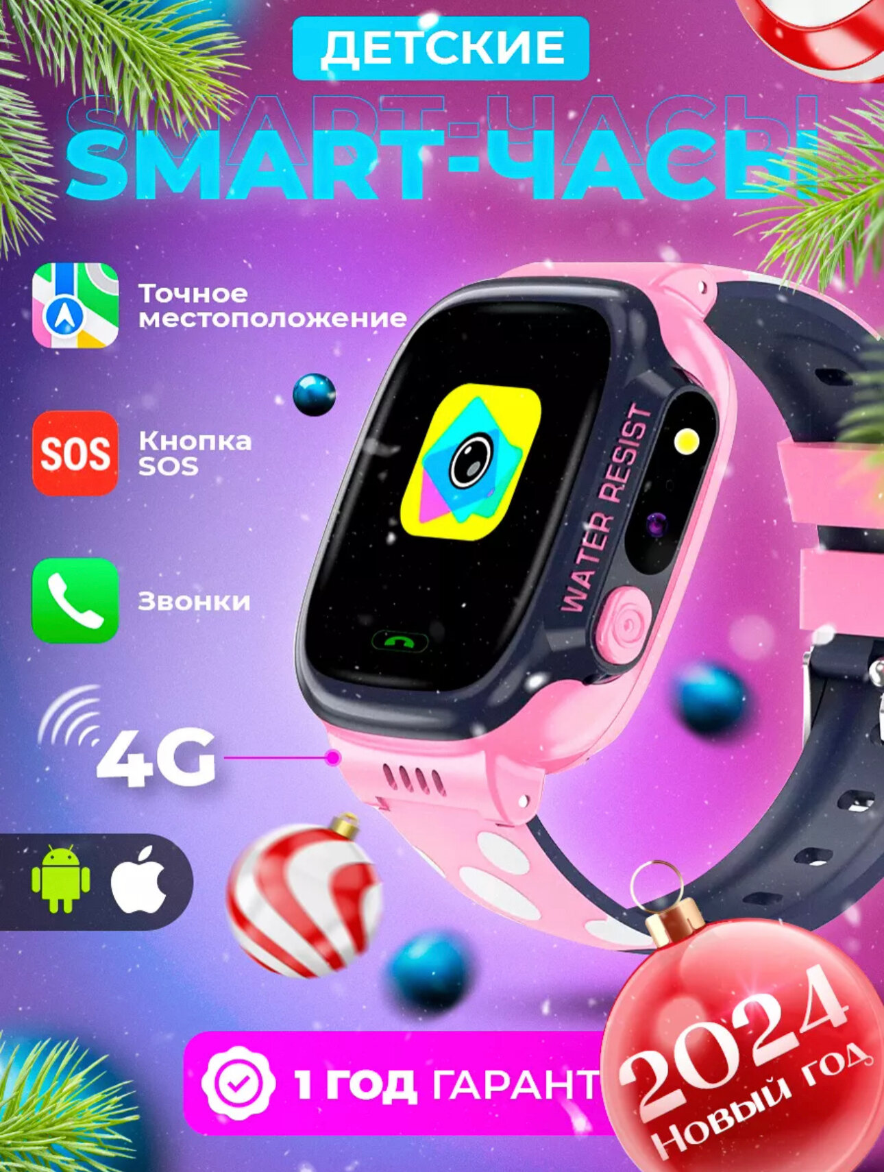 Redmi / Детские наручные смарт-часы с сим-картой, розовые / Смарт часы для ребенка / Умный смарт-браслет для ребенка с GPS-геолокацией и видеозвонком информация: