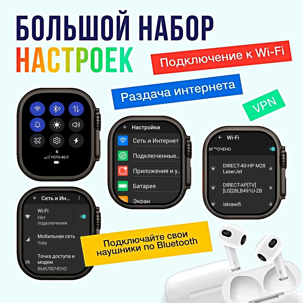 Смарт часы HK ULTRA ONE Умные часы PREMIUM Smart Watch AMOLED 4G, Wi-Fi, iOS, Android, Галерея, Игры, Браузер, Камера, Звонки, Черный 8 498 ₽