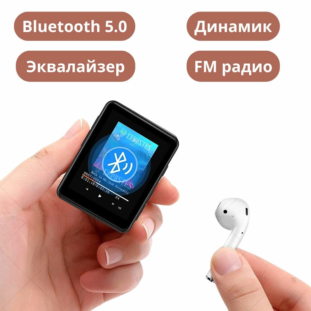 MP3 плеер с bluetooth и диктофоном, мп3 плеер для музыки с клипсой на одежду 4Гб информация: