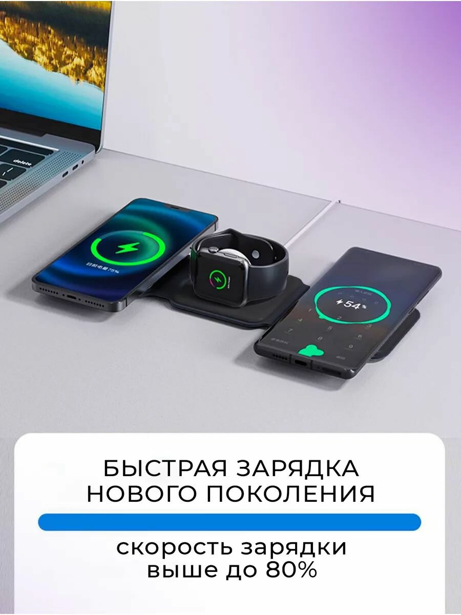 Универсальная складная док-станция 3 в 1 с быстрой зарядкой 15W для iPhone, Samsung, Xiaomi, MagSafe и устройств Apple Watch - белый информация: