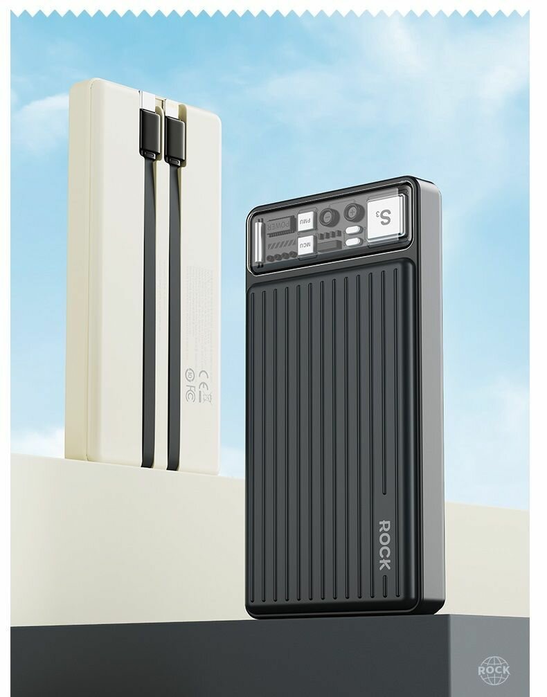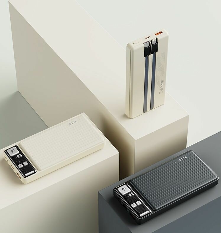 Внешний аккумулятор Xiaomi ROCK P96 12W Travel Series Power Bank With Cable 10000mAh бежевый информация:
