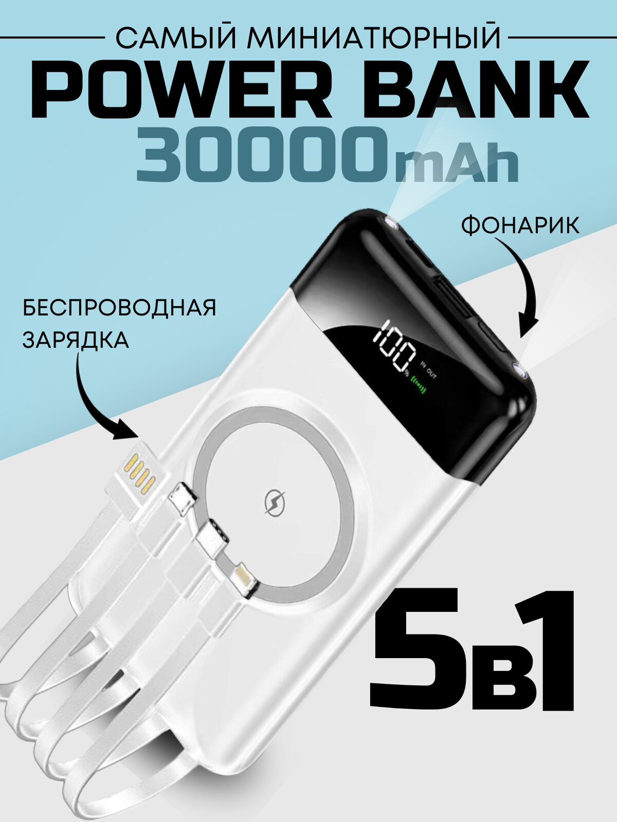 Портативный внешний аккумулятор Power Bank 30000 mAh, белый информация: