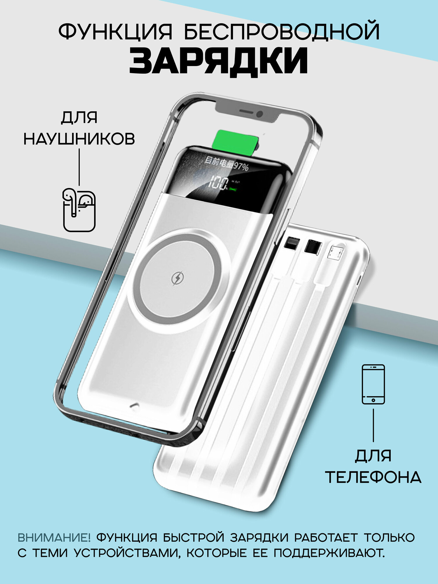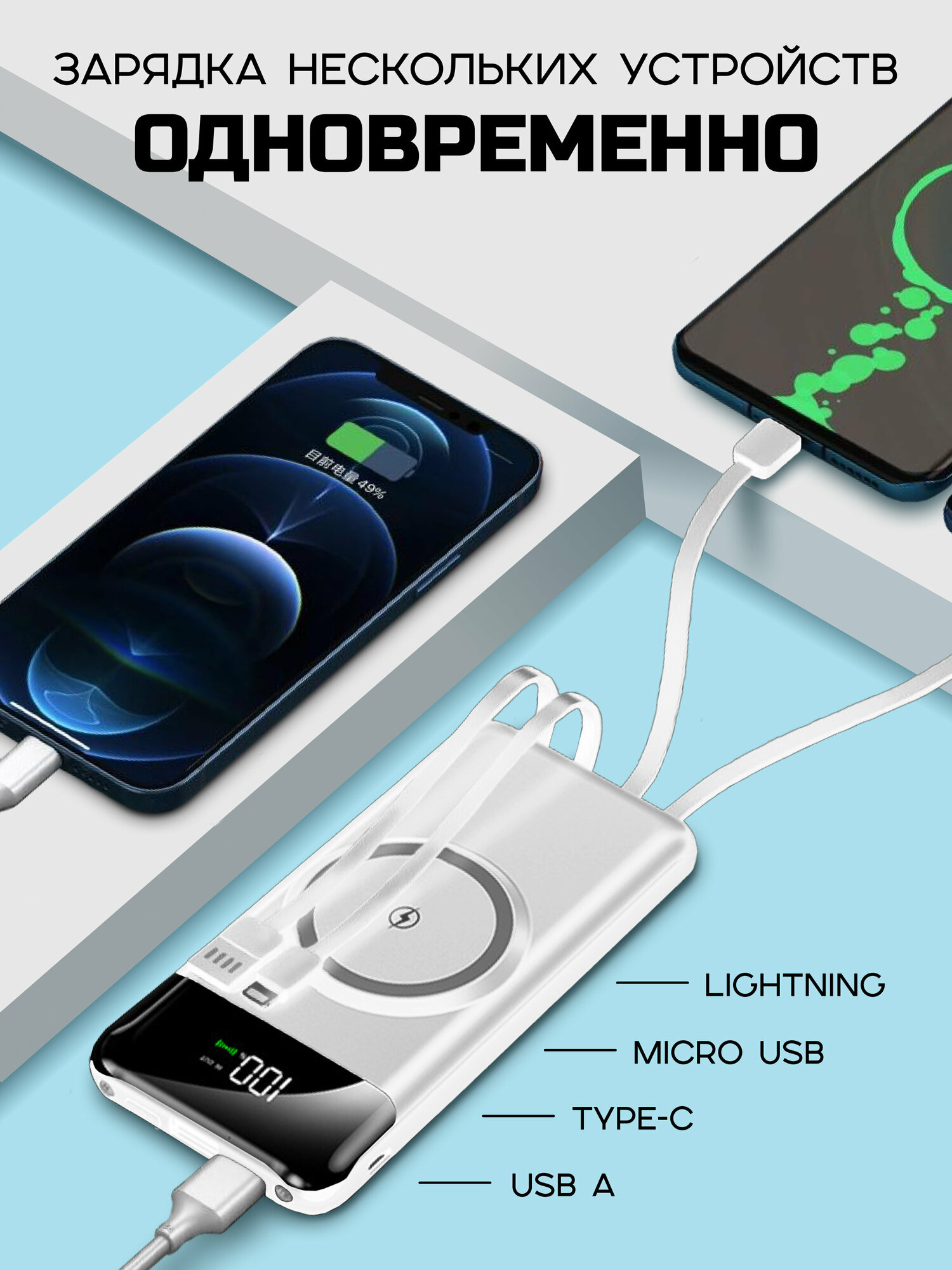 | Комплектация | портативный аккумулятор с встроенными кабелями Usb / Lightning / Type-c / Micro USB |