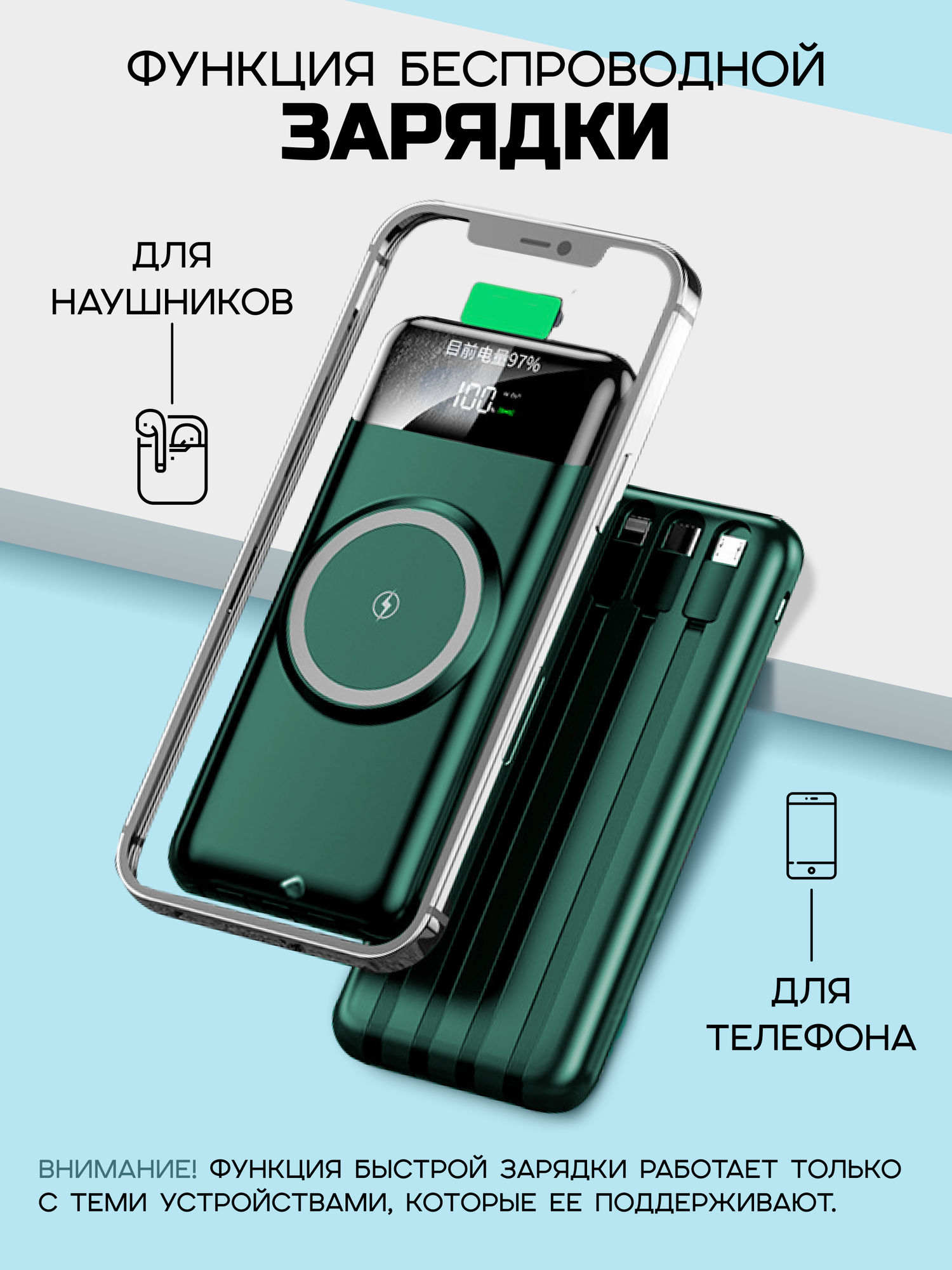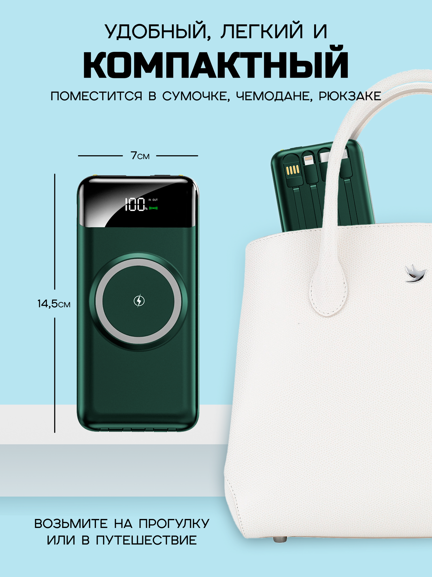 | Комплектация | портативный аккумулятор с встроенными кабелями Usb / Lightning / Type-c / Micro USB |