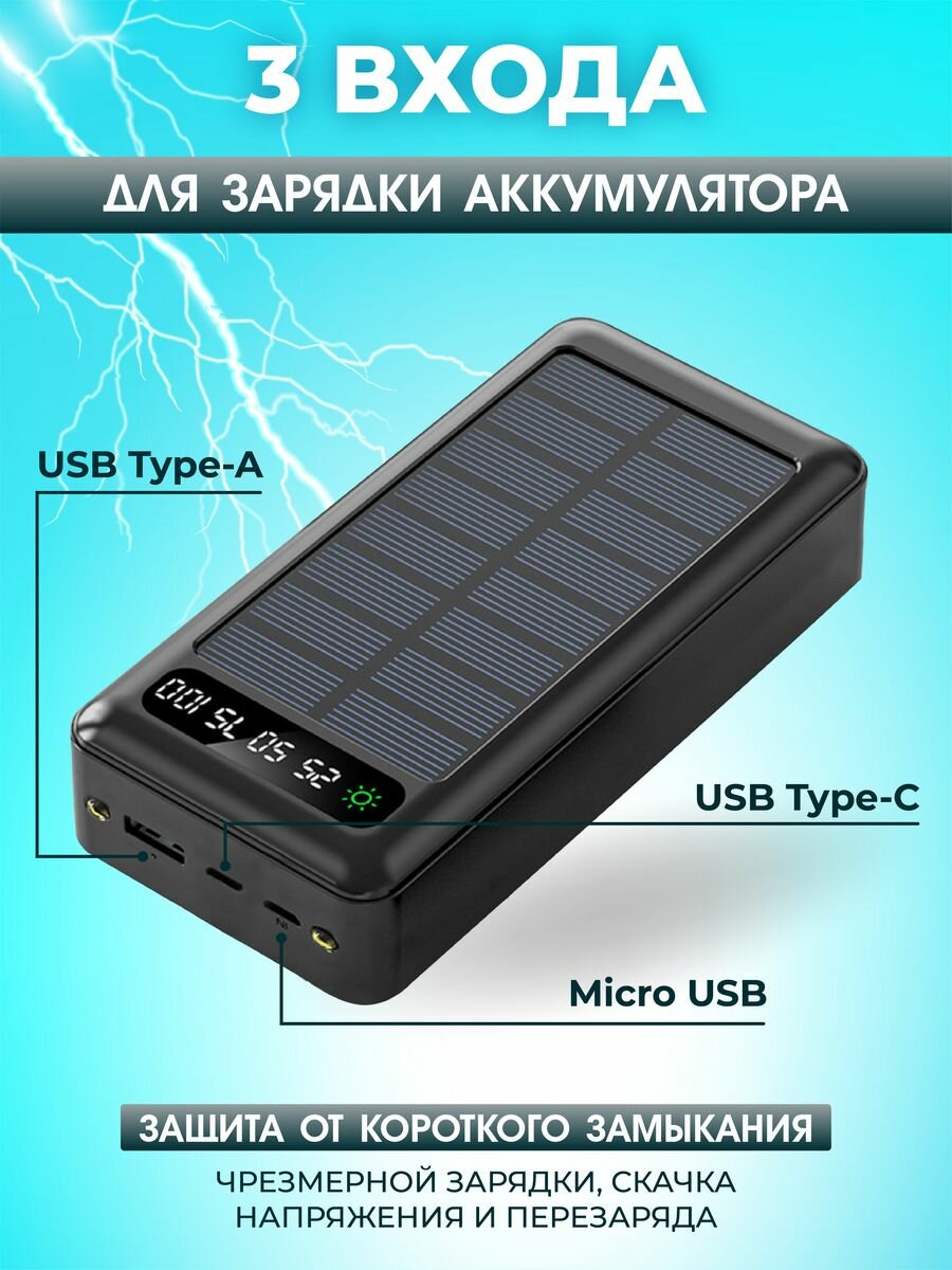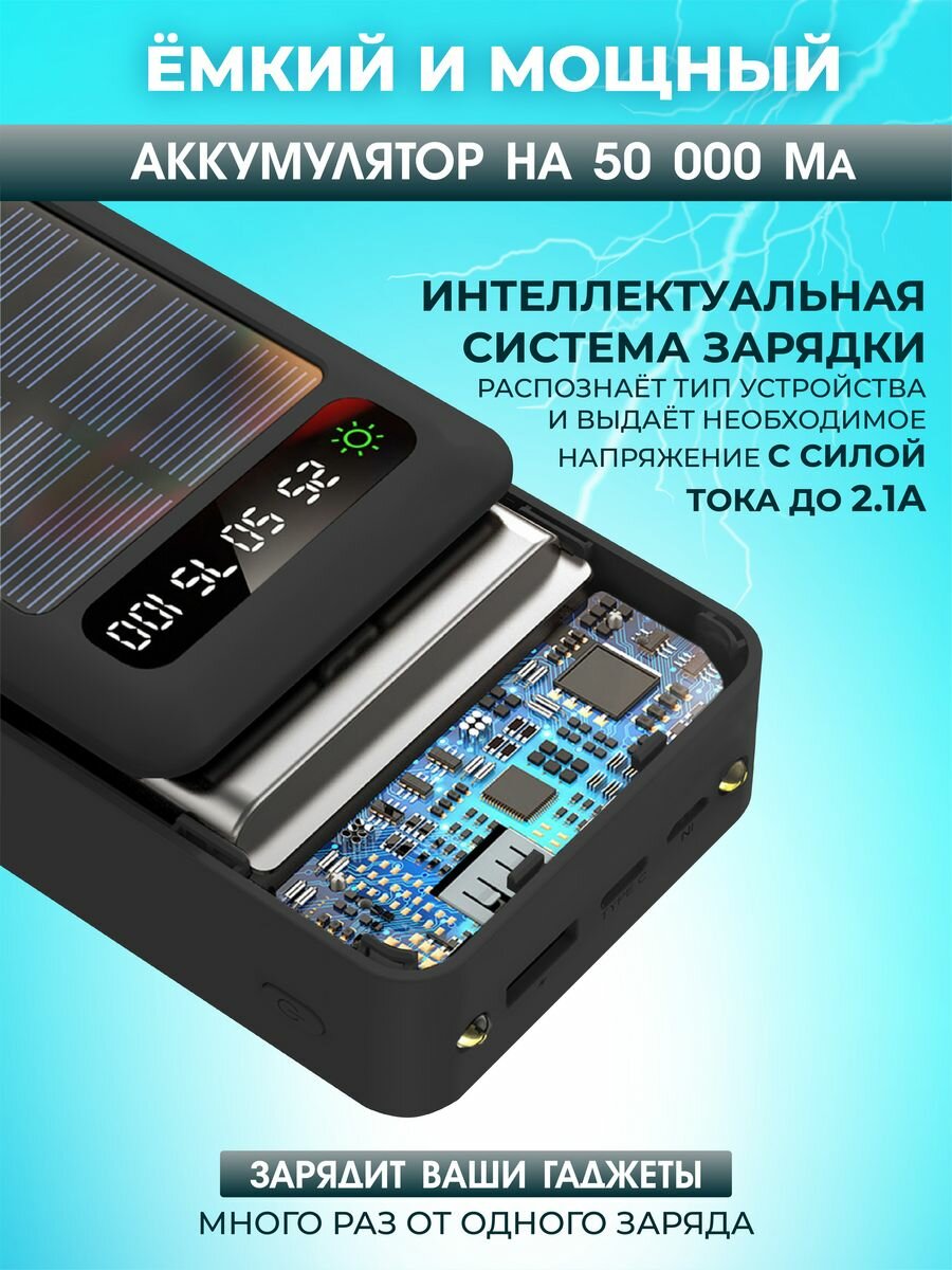 Внешний аккумулятор Bootleg 50000 mAh для телефона aйфона iphone android windows / зарядное устройство повербанк / power bank с солнечной батареей 2 349 ₽