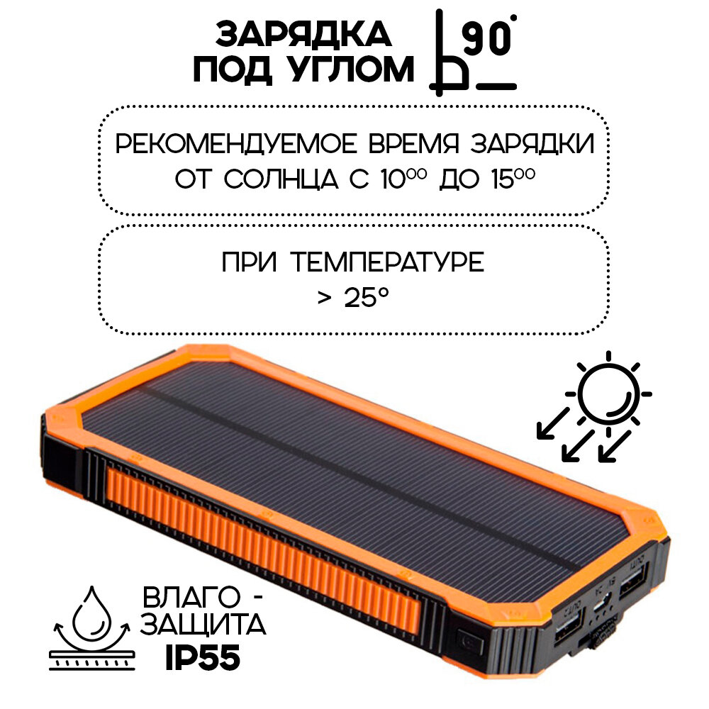 Внешний аккумулятор Power Bank Solar Charger 20 000, цвет - оранжевый информация: