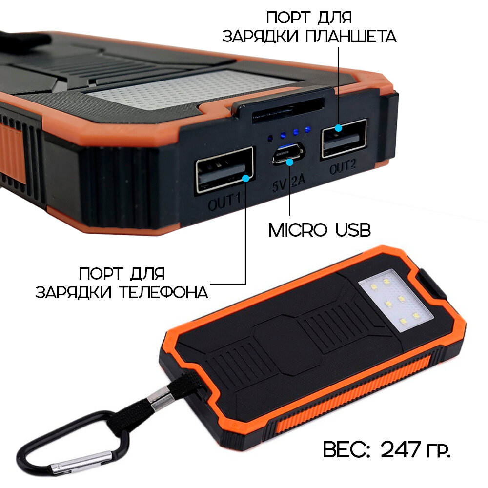 Отзывы на Внешний аккумулятор Power Bank Solar Charger 20 000, цвет - оранжевый
