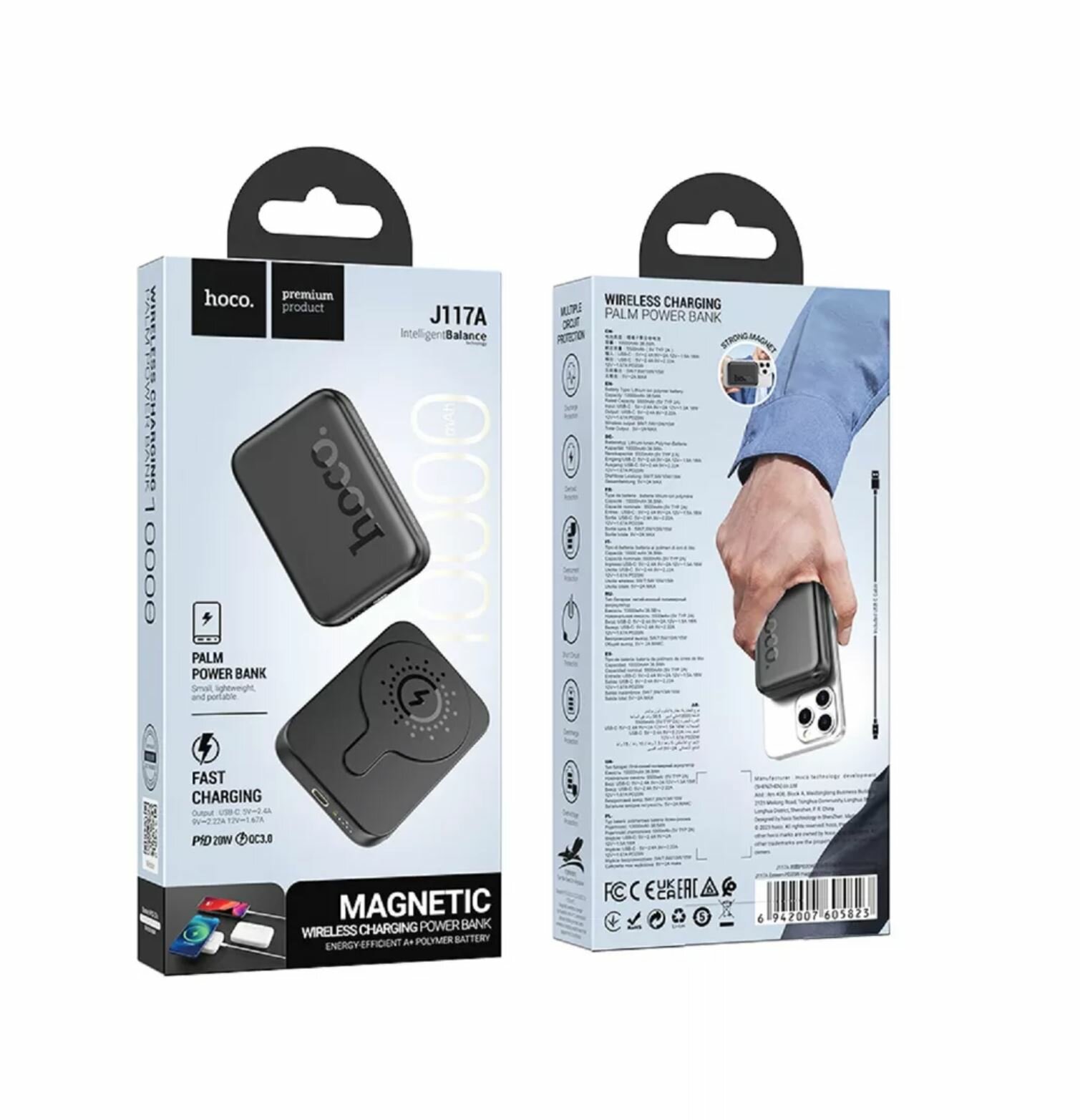 Универсальный Доп. Аккумулятор 5000mAh, J117, HOCO, выход: 1 PD 20W, беспроводная зарядка (MagSafe), черный