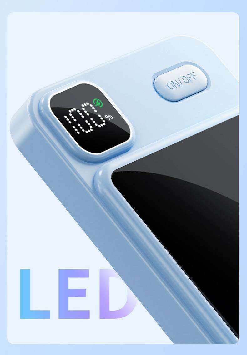 Отзывы на Портативный внешний аккумулятор с поддержкой беспроводной зарядки MAGNETIC, голубой, (10000mAh, Magnetic MagSafe, 22.5W, QC 3.0, PD, 3A, Lightning input, Type-C)