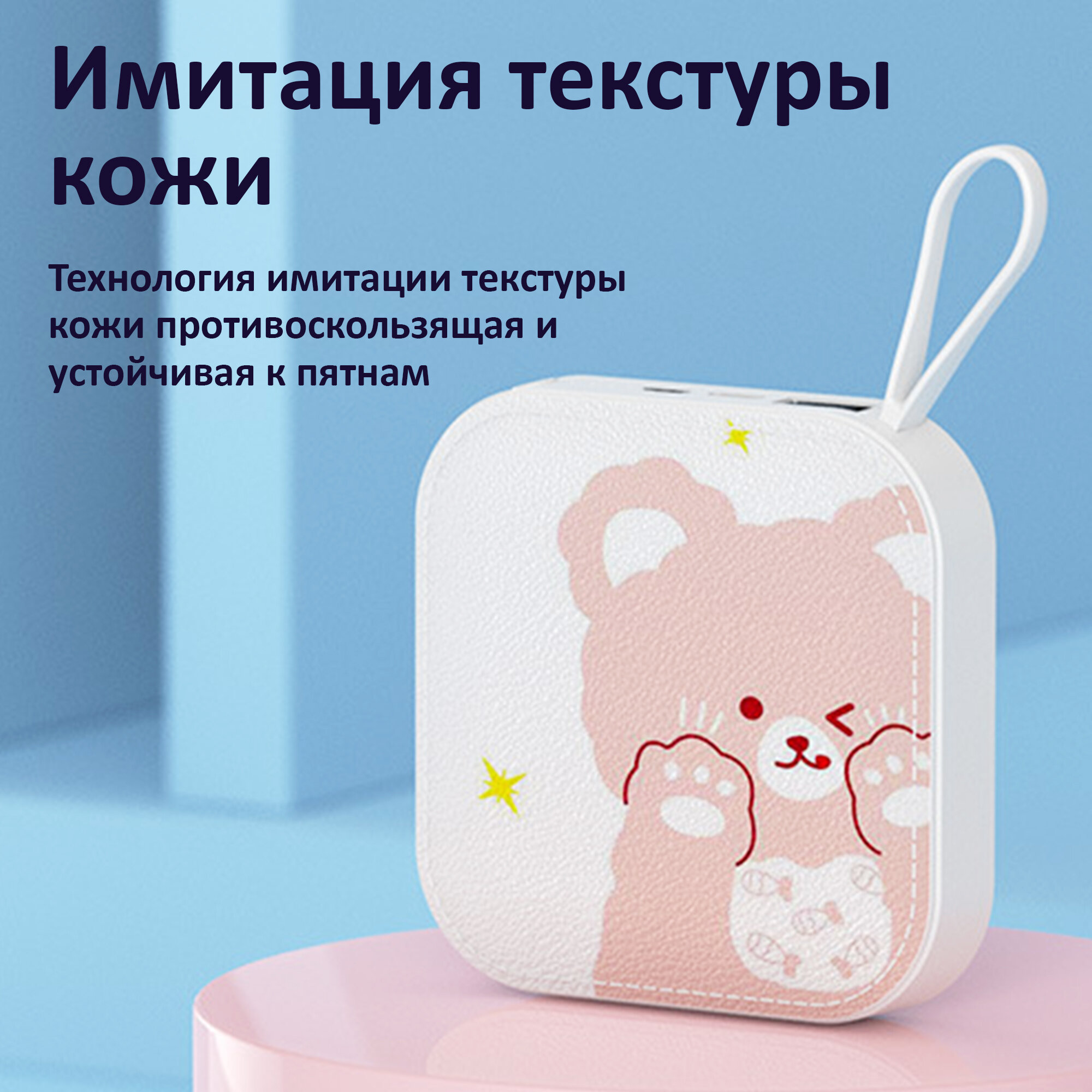 Отзывы на Повербанк с картинкой аниме Мишка, внешний аккумулятор детский, 10000 мА·ч, белый