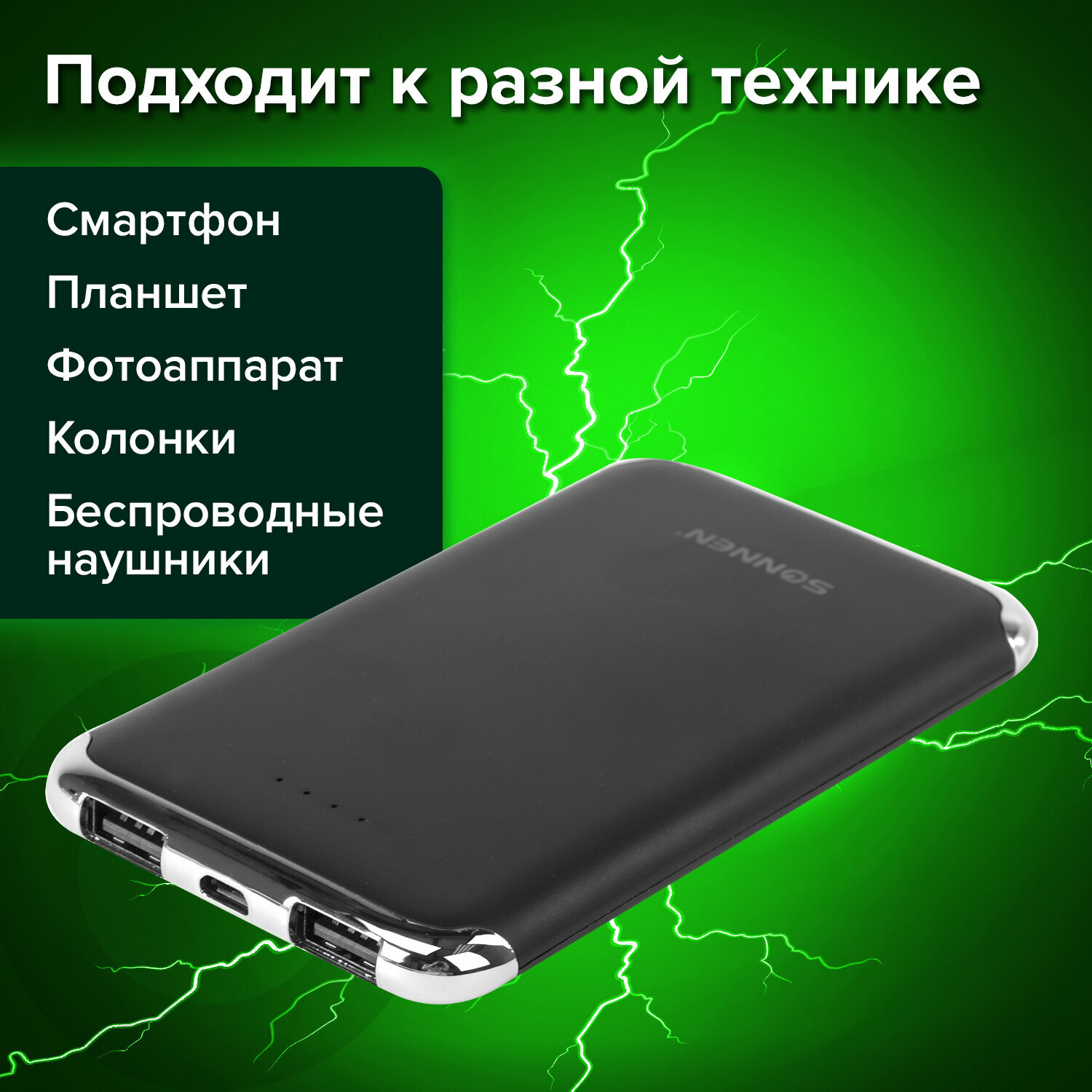 Аккумулятор внешний 6000 mAh SONNEN POWERBANK K611, 2 USB, литий-полимерный, черный, 263029 1 шт .