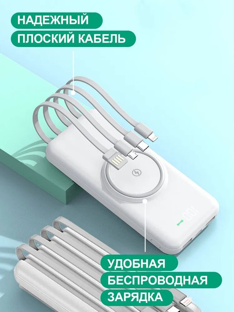 Внешний аккумулятор с беспроводной зарядкой на 20000 мАч, белый, повербанк для смартфонов, портативная зарядка, Micro USB, lightning, USB-A, Type-C информация: