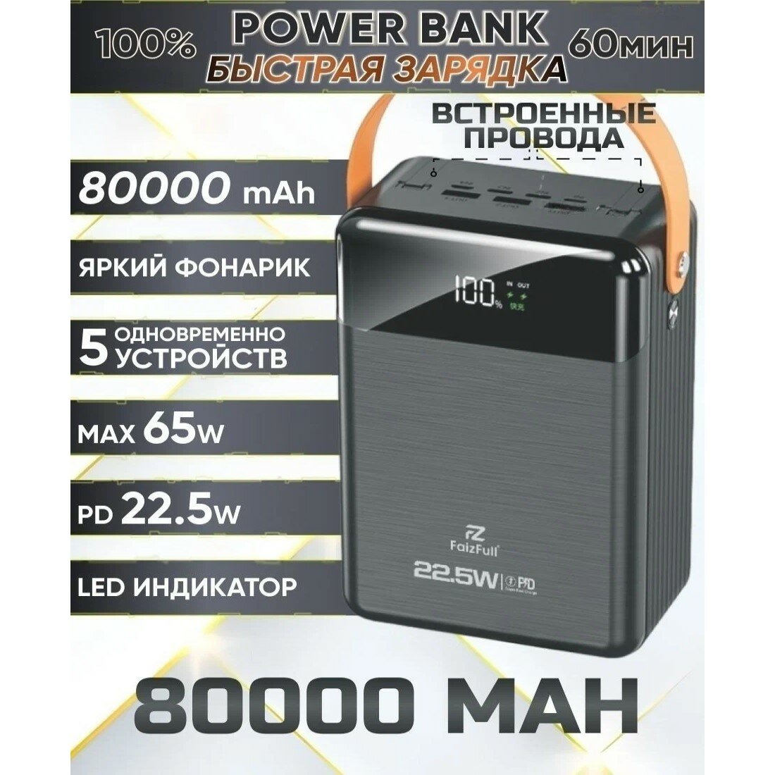 Внешний аккумулятор, power bank, повер банк, портативный аккумулятор, дисплей, 80000 mAh, быстрая зарядка, защита от короткого замыкания, черный информация: