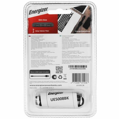 Портативный аккумулятор Energizer UE5008 черный / внешний аккумулятор маленький информация: