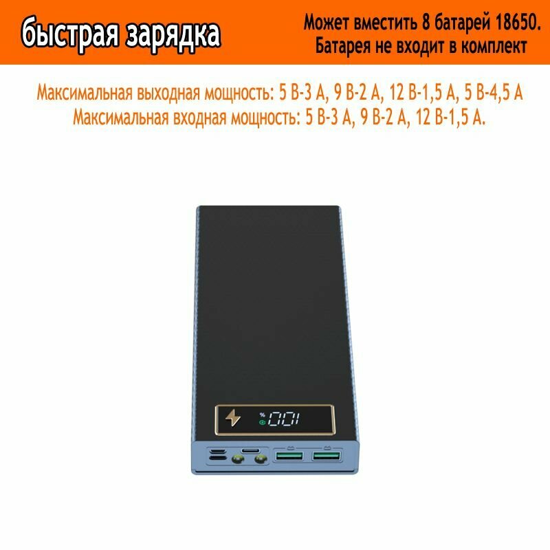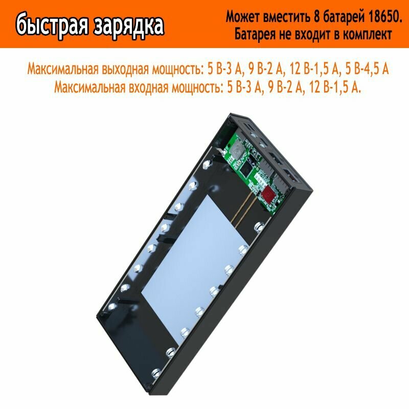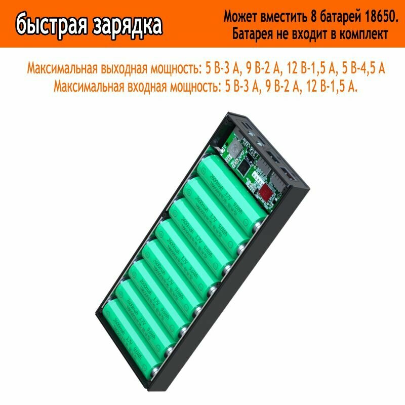 8 акб Корпус Power Bank 18650 - черный - быстрая зарядка информация: