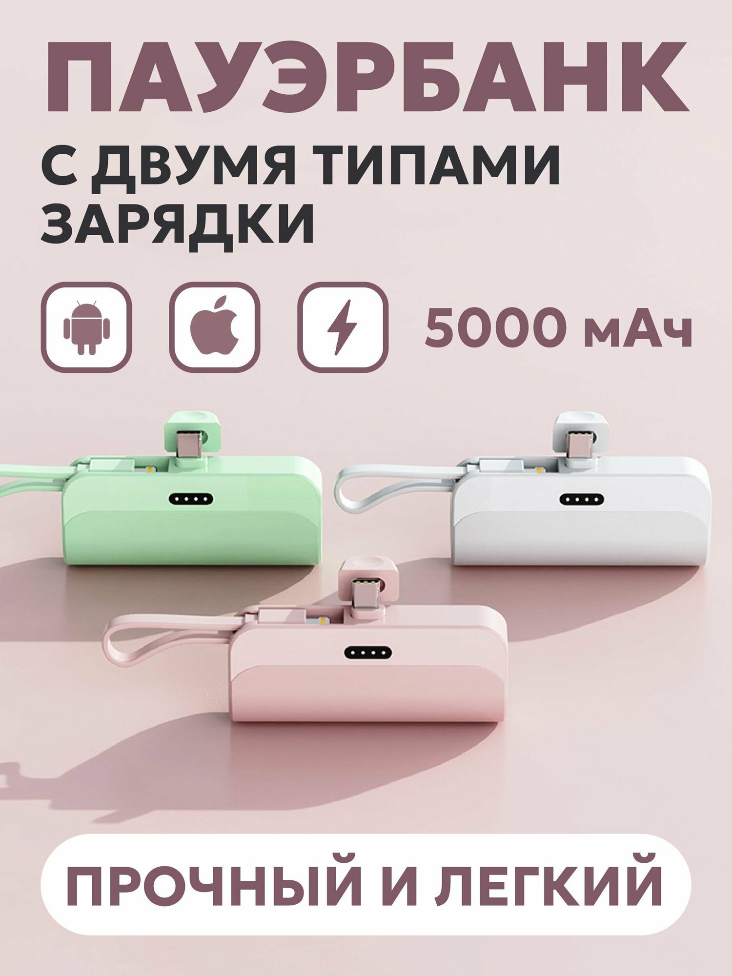 Пауэрбанк мини для айфона или андроид, компактный внешний аккумулятор информация: