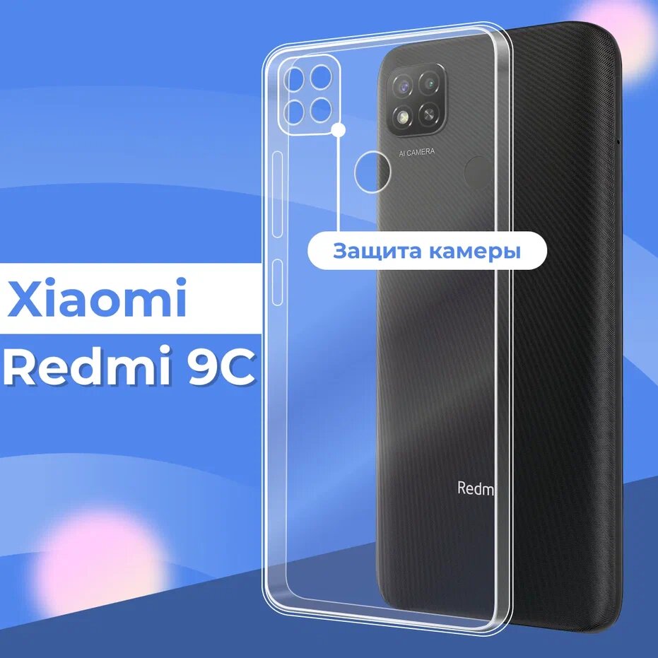 Прозрачный силиконовый чехол для телефона Xiaomi Redmi 9C с защитой камеры / Противоударный тонкий чехол на Сяоми Редми 9С информация: