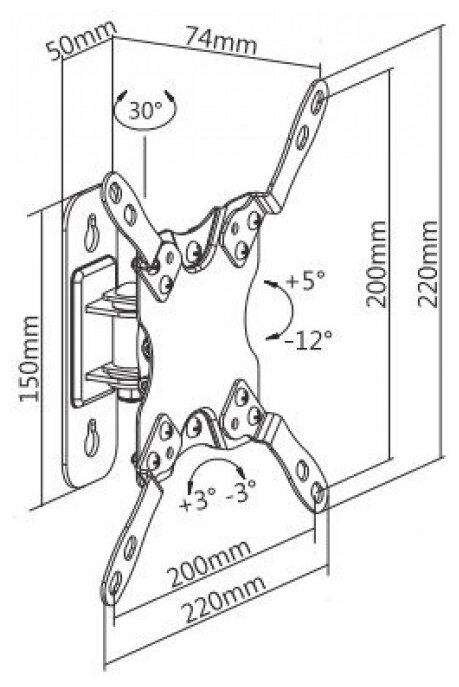 Кронштейн Ultramounts UM862 черный 13-42 настенный от стены 74мм VESA 200x200 до 20кг 1 556 ₽