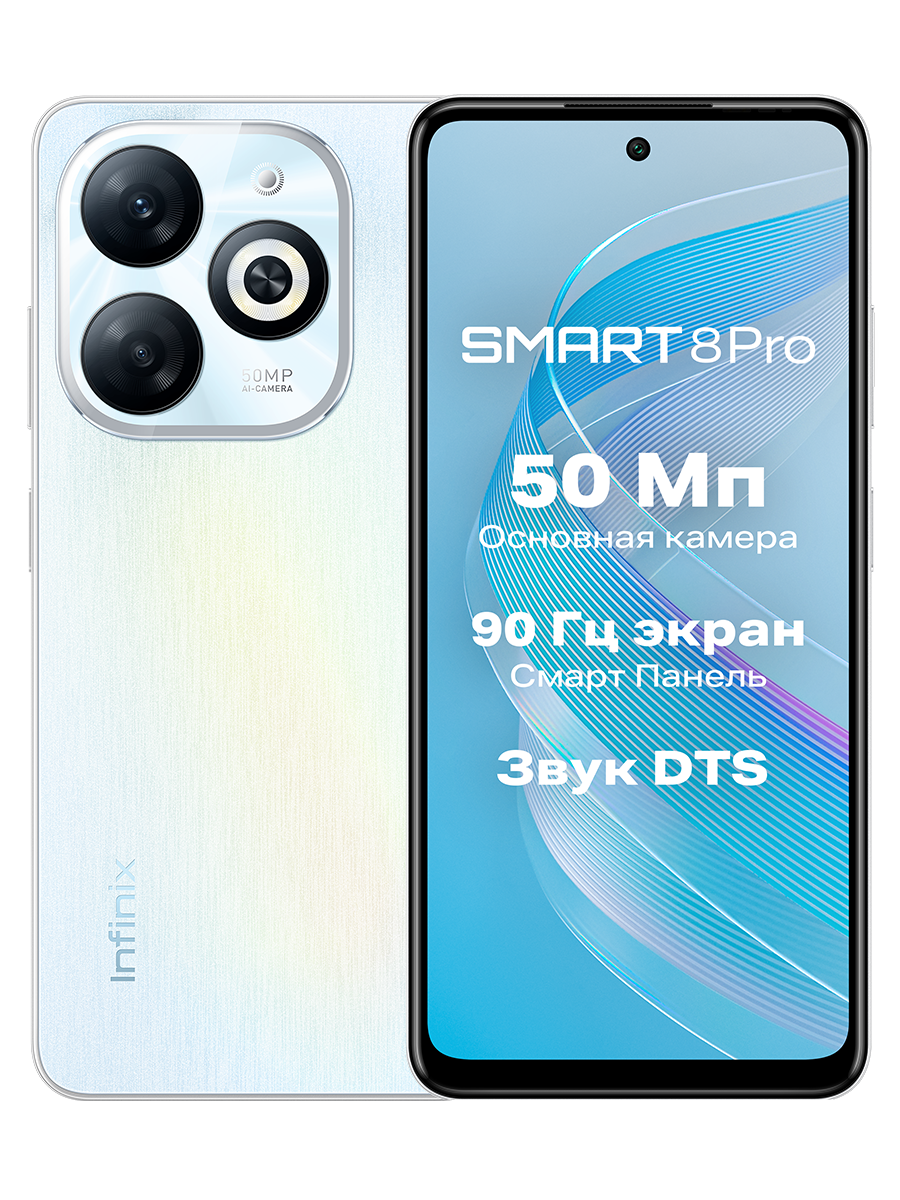 10 цен на Смартфон Infinix X6525B Smart 8 Pro 128Gb 8Gb белый моноблок 3G 4G 2Sim 6.56 720x1612 Android 50Mpix 802.11 a/b/g/n/ac GPS GSM900/1800 GSM1900 TouchSc