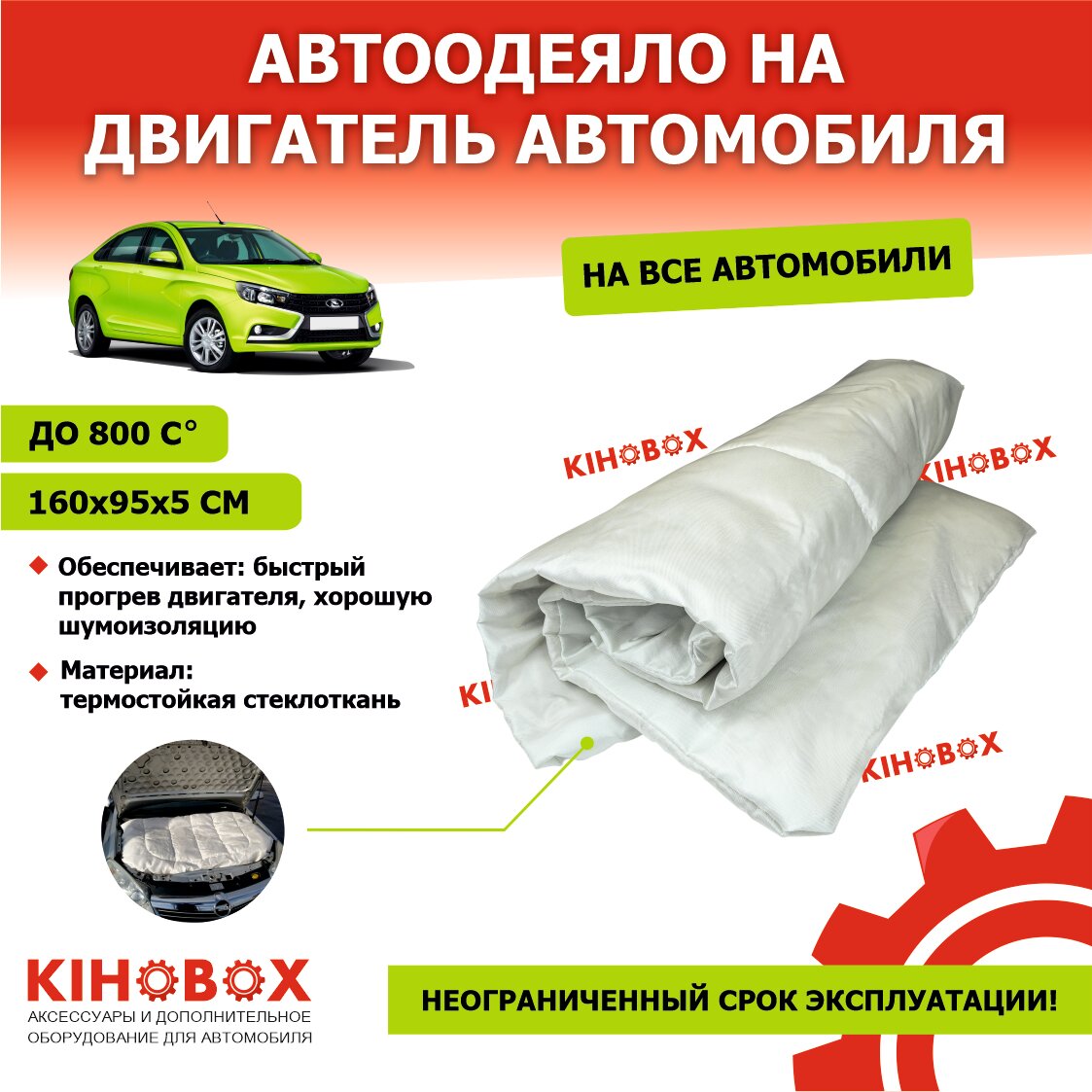 Отзывы на Уплотнитель двигателя (авто одеяло) термостойкий стеклоткань до 800 С 160х95х5 KIHOBOX АРТ 5801102