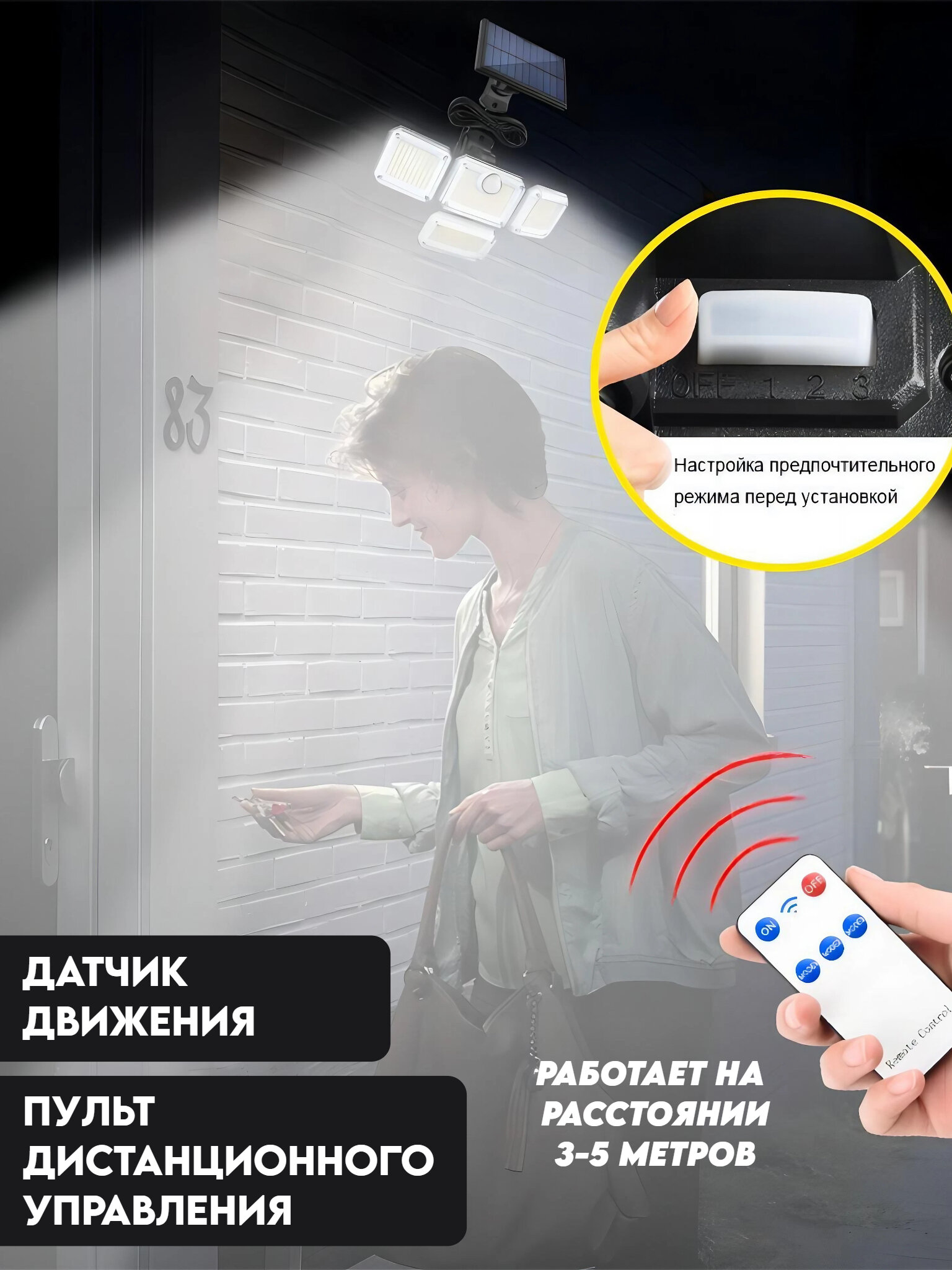 Прожектор уличный тройной, с датчиком движения, на солнечной батарее 192 COB