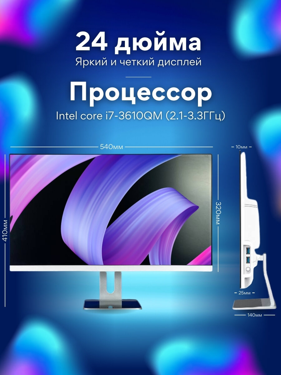 Моноблок OfficePlus v5 24 дюйма i7/8gb/512 ssd,4 ядра, Wi-Fi, Bluetooth, Белый информация: