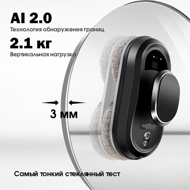 Робот мойщик окон с распылением CL-2,Робот для мойки окон со Мобильное приложение сменными +салфетками 10 шт,черный 6 710 ₽
