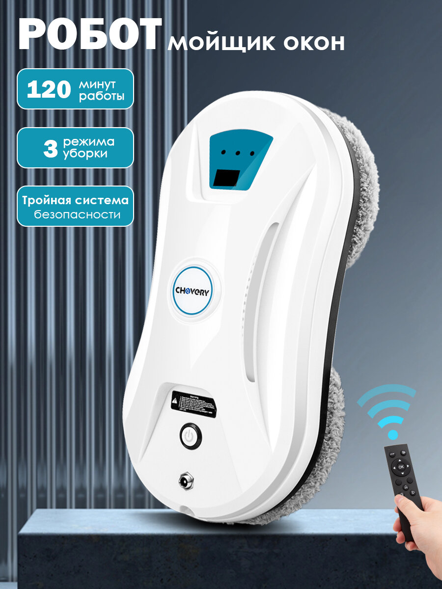 Робот-стеклоочиститель CHOVERY CL-3 Робот мойщик окон, Белый и синий информация: