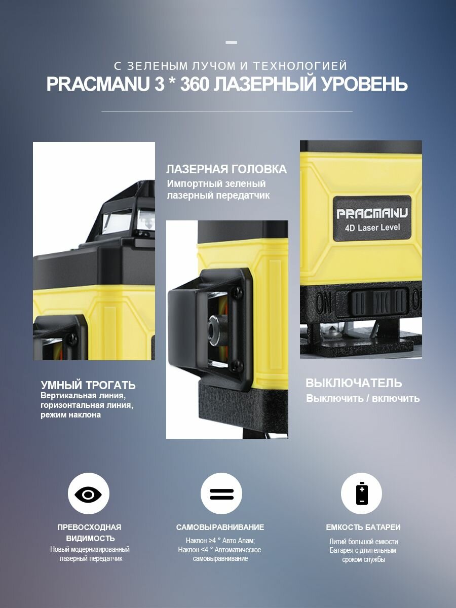 Лазерный уровень/нивелир PRACMANU HH16, Зеленый луч информация: