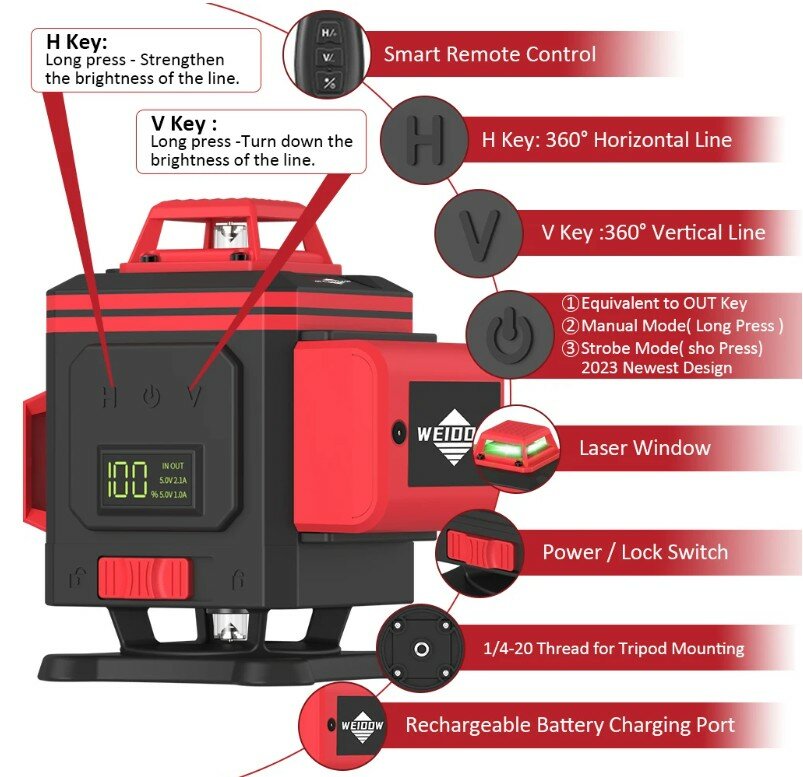 Лазерный уровень WEIDDW самовыравнивающийся 12 линий информация: