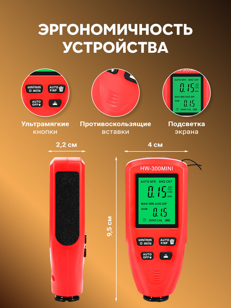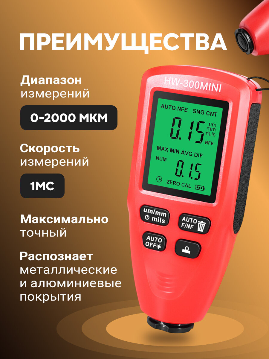 10 цен на Толщиномер автомобильный лакокрасочных покрытий для автоподбора ЛКП магнитный HW-300MINI / Подарок
