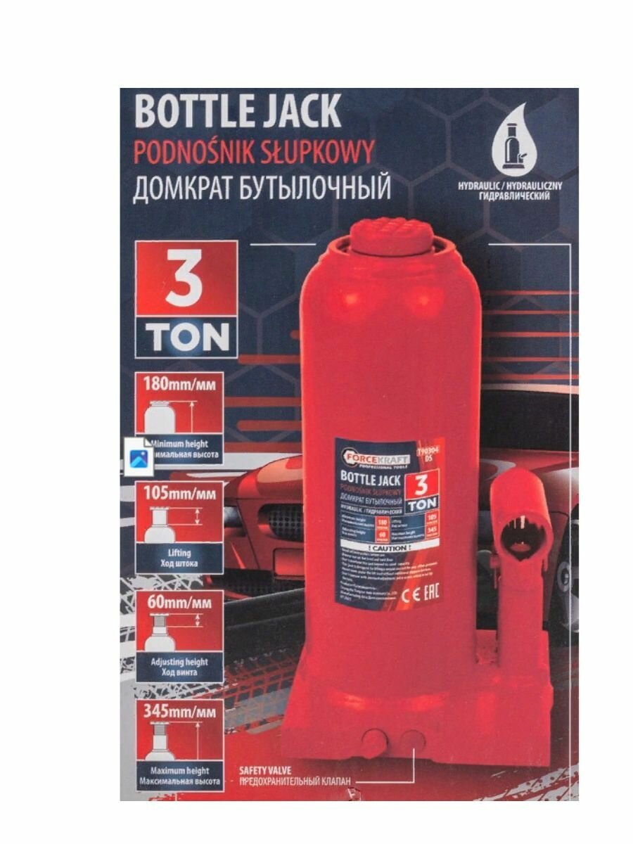 FORCEKRAFT Домкрат гидравлический бутылочный, 5т (с предохранительным клапаном, минимальная высота: 185 мм, ход штока: 115 мм, ход винта: 60 мм, максимальная выс FK-T90504(DS)(26574) 2 520 ₽