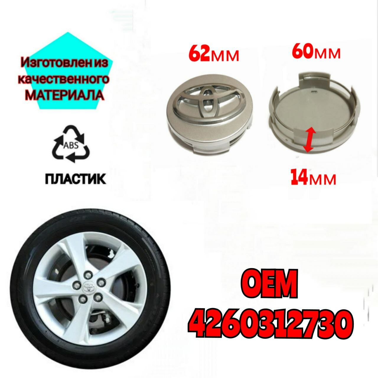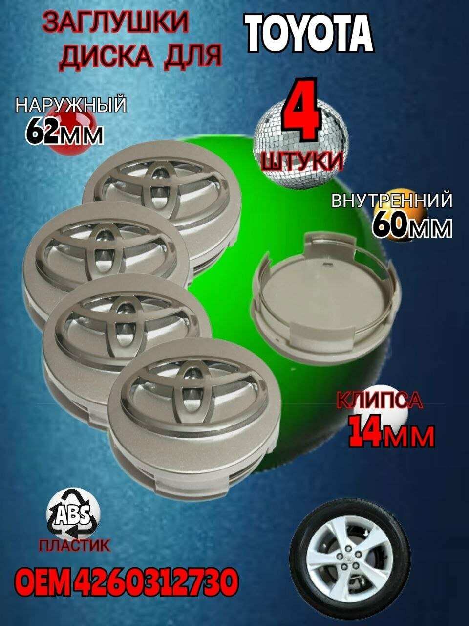 Отзывы на Заглушка диска/Колпачок ступицы ступицы литого диска для Тойота Toyota 62-60 цвет серебристый 4 штуки