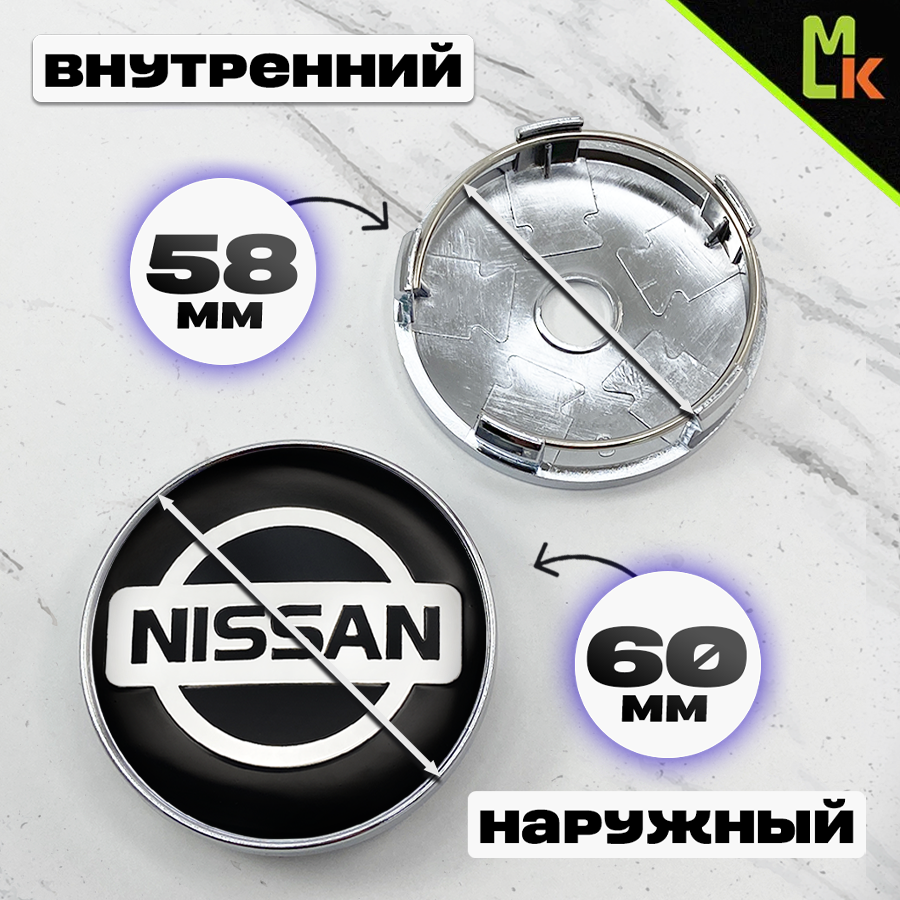 Колпачки на ступицу колеса 4 шт, автоколпак, заглушка диска, колпачки в автомобильные диски, с эмблемой "Ниссан" посадочный диаметр 58 мм информация: