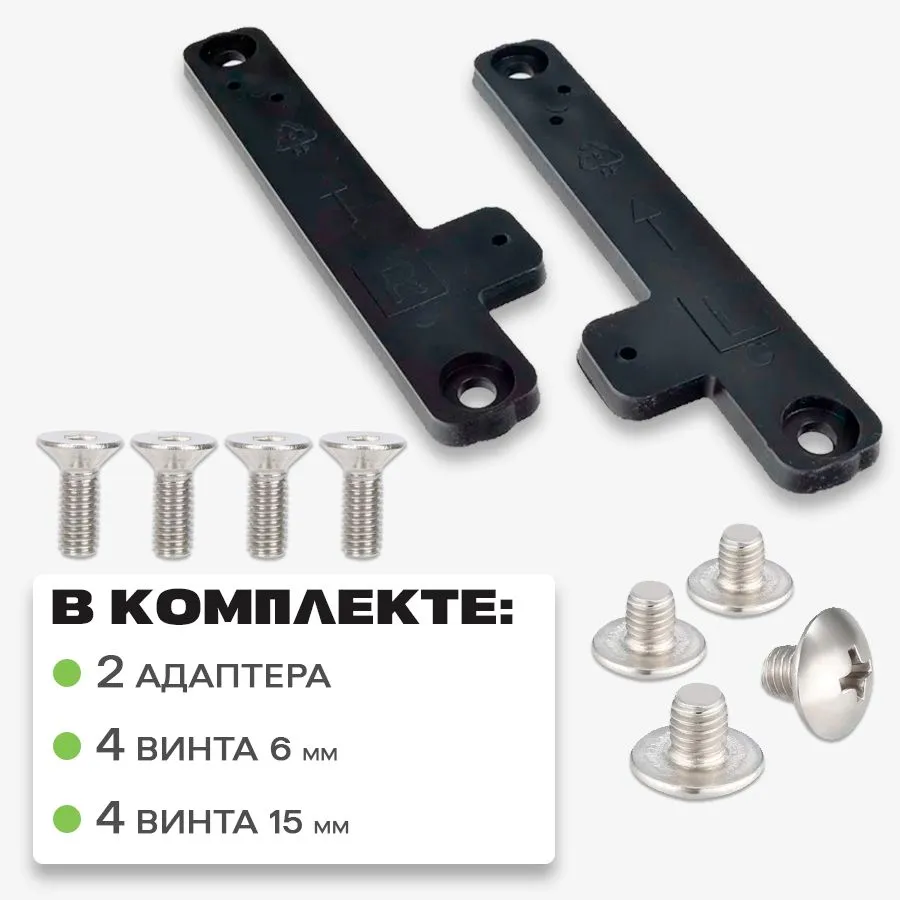 | Комплектация | 2 адаптера - правый и левый, 4 самореза 6 мм, 4 самореза 15 мм |