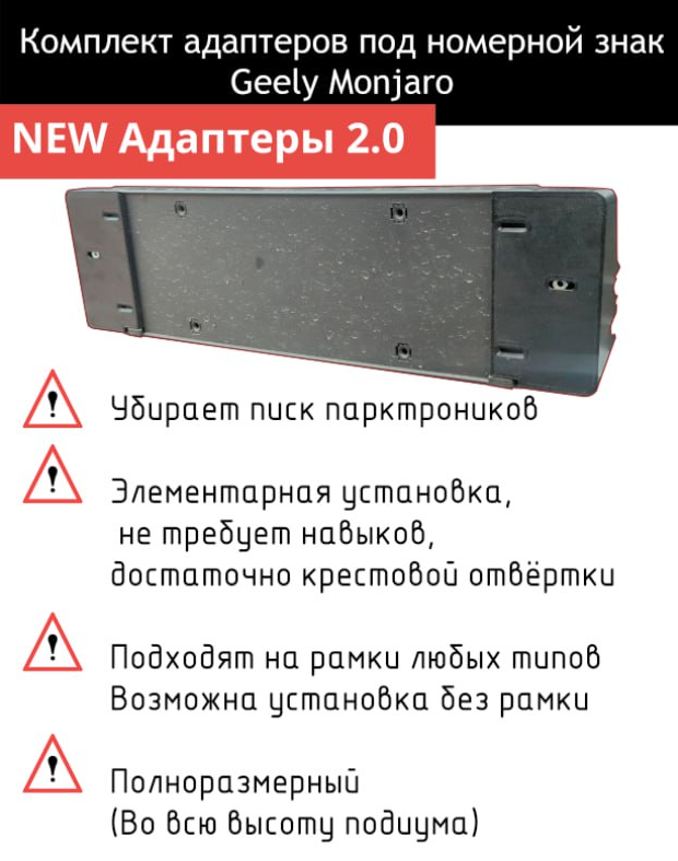 Комплект Адаптеров под номерной знак Geely Monjaro Улучшенные ДВС Передний + задний информация: