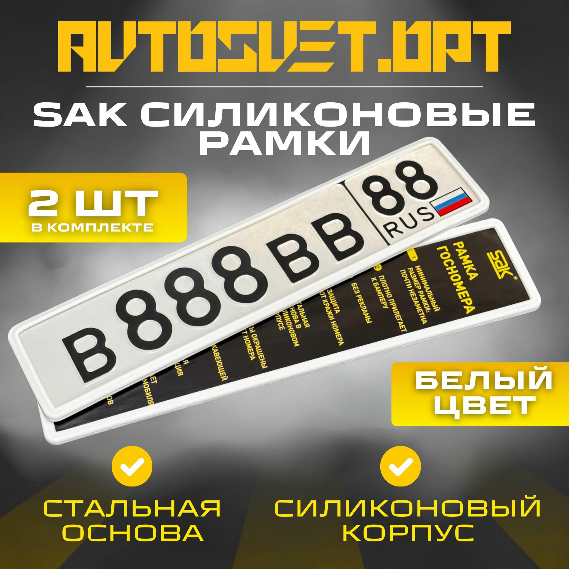10 цен на Силиконовые автомобильные рамки Sak Белые 2шт для номеров / рамка номерного знака