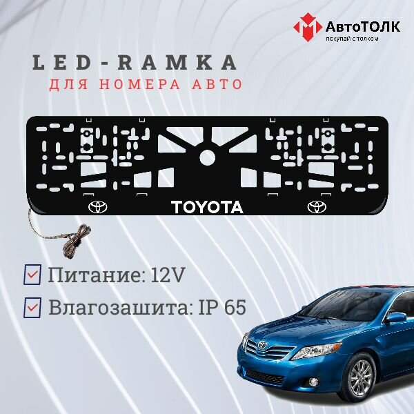 10 цен на Рамка для номера с подсветкой, пластик ABS. Toyota. Подсветка белая. 12V.