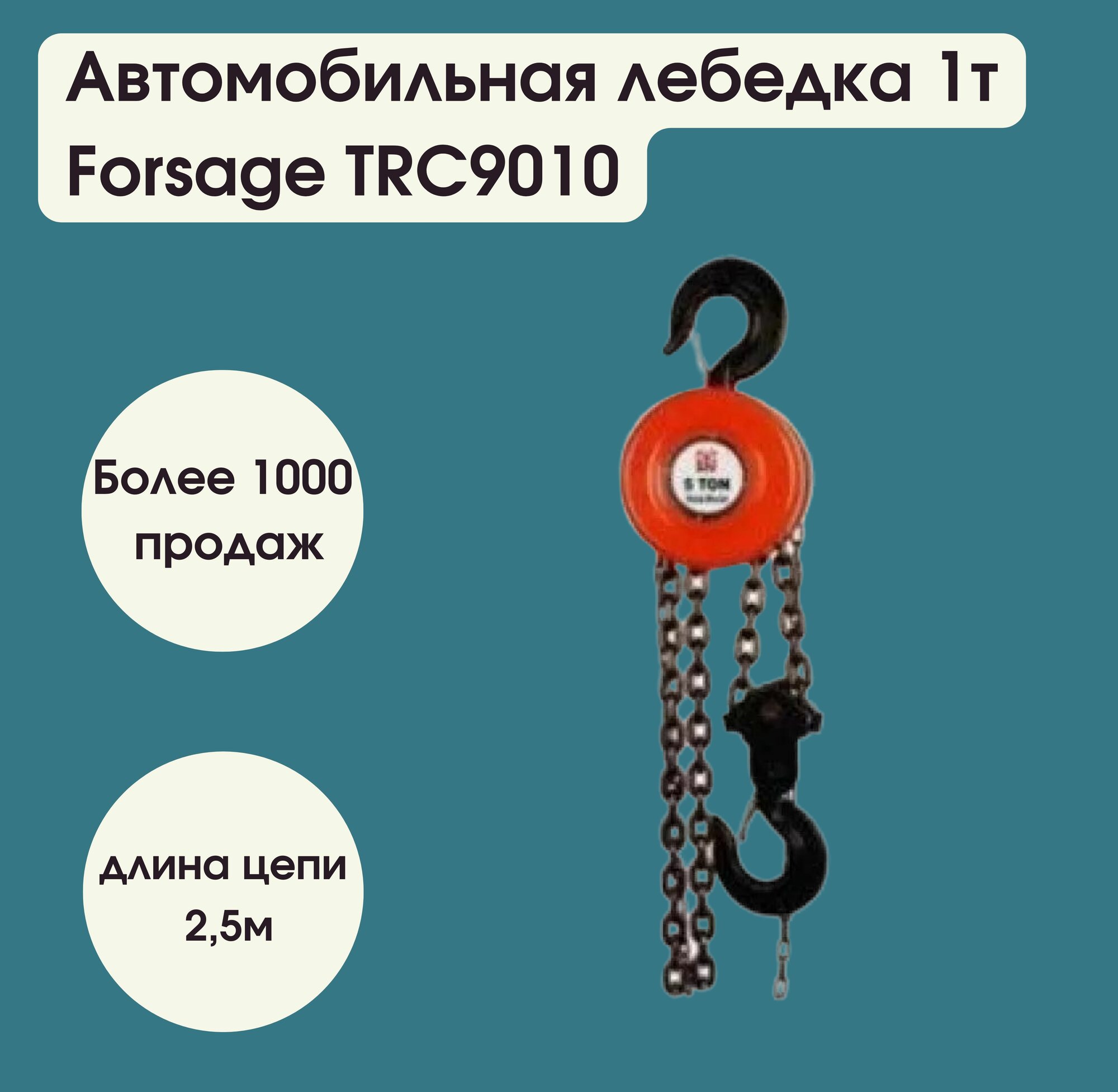 Отзывы на Лебедка механическая подвесная c фиксацией цепи натяжения, 1 т (длина цепи - 2,5м) Forsage F-TRC9010