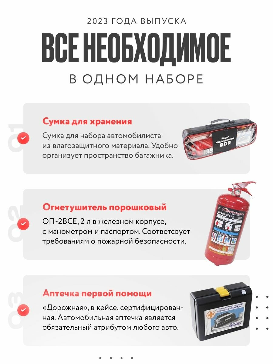 Дорожный набор автомобилиста с огнетушителем и аптечкой 2023 информация: