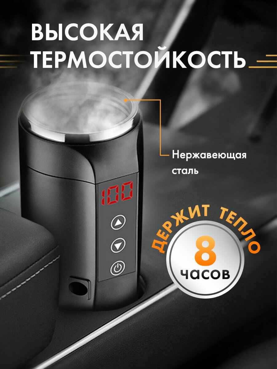 Чайник автомобильный Classmark электрический от прикуривателя, термо кружка электрочайник для авто, 12в, объем 400 мл, температура нагрева от 25 до 100 градусов информация: