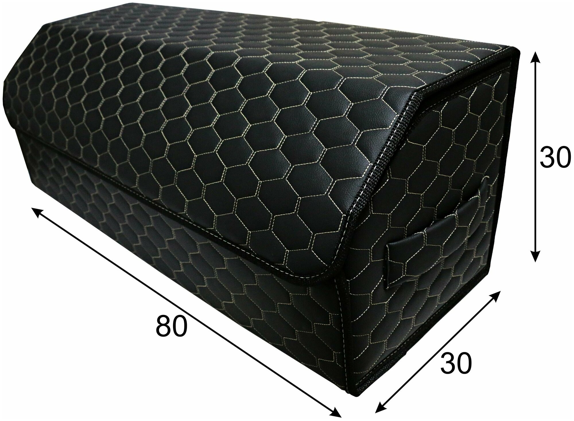 Отзывы на Органайзер в багажник автомобиля 80х30х30 рисунок соты черн/строчка беж/бокс/кофр для авто