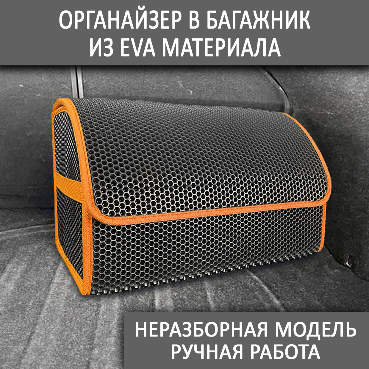 Органайзер в багажник автомобиля для хранения вещей / Сумка органайзер из эва материала / Кейс в авто оранжевый кант информация: