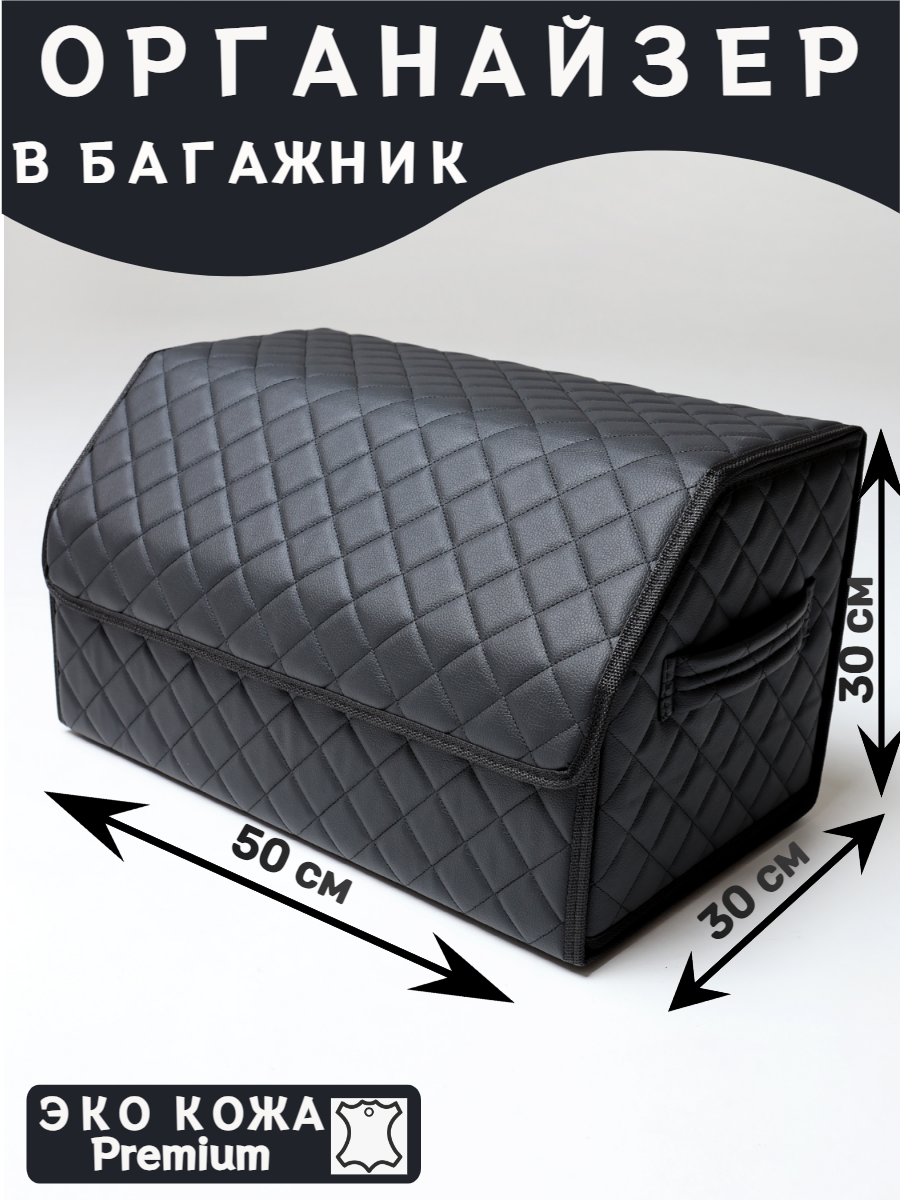 Саквояж в багажник автомобильный эко кожа черная синий ромб, объем 45 л